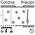 The measurement of the PN concentration via diffusion charging consists of two steps. First, the particles are electrically charged. Unipolar chargers are typically used because they achieve higher charge levels per particle compared to bipolar chargers. A common method for generating unipolar ions involves a controlled corona discharge, and chargers that use this technique are known as corona chargers. The ions generated in the discharge region recombine with the aerosol via diffusion, charging the particles. Direct charging of the aerosol leads to particle losses due to depositions on the corona, which in turn can lead to unstable ion generation (Qi et al., 2007). To avoid direct interaction between the high-voltage corona wire and the particles, ions are often generated outside the flow path and pulled into the aerosol flow, where they recombine via diffusion by an applied electric field (Park et al., 2007).